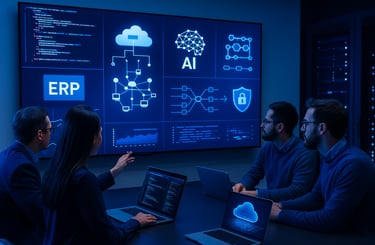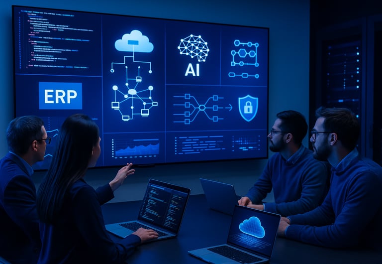 ERP: selección de ERP, CRM o producto, análisis, diseño, implementación, migración, pruebas, adopción y change management.